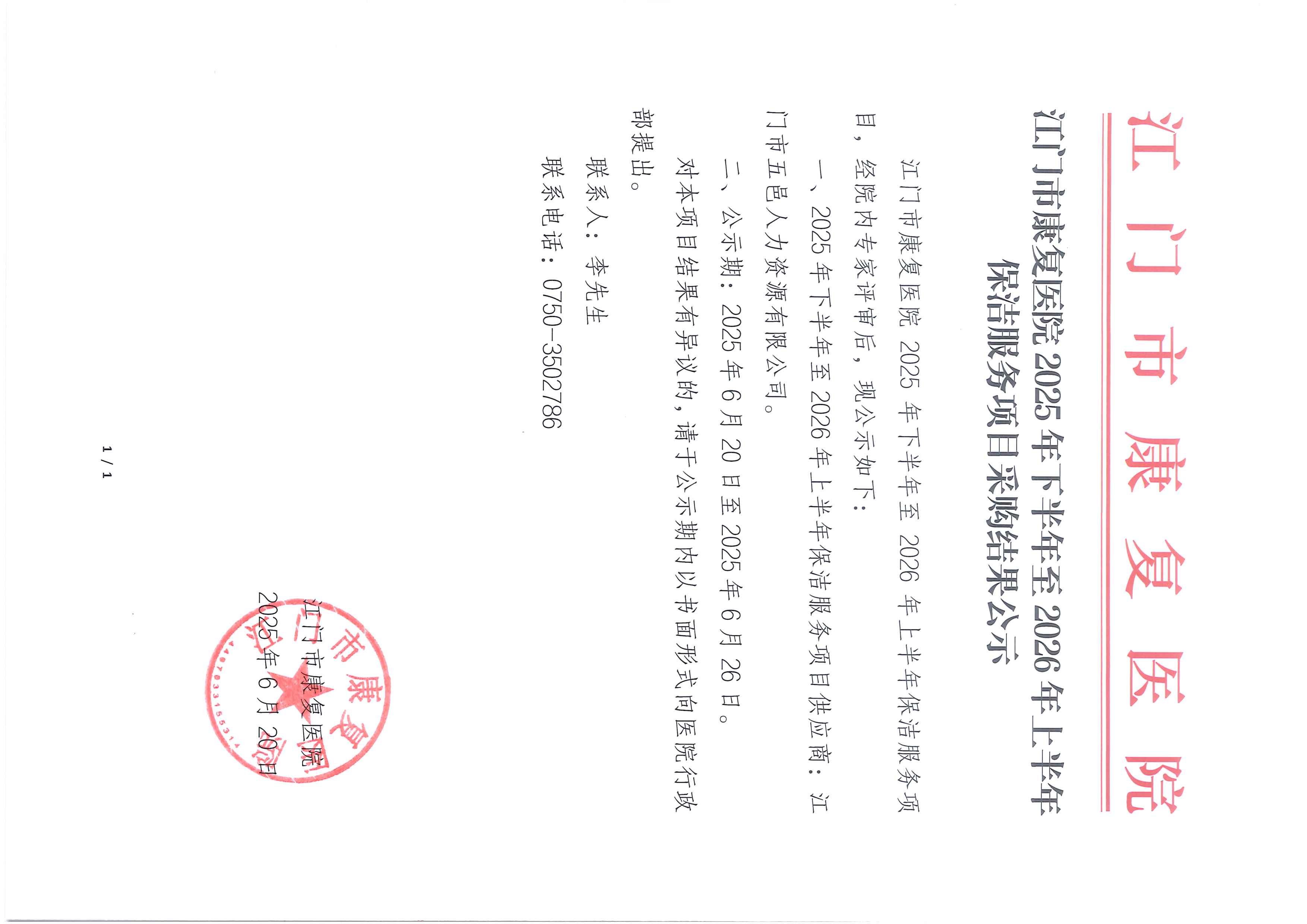 江門市康復(fù)醫(yī)院2025年宣傳統(tǒng)戰(zhàn)第三方運(yùn)營(yíng)項(xiàng)目采購(gòu)公告(第二次)