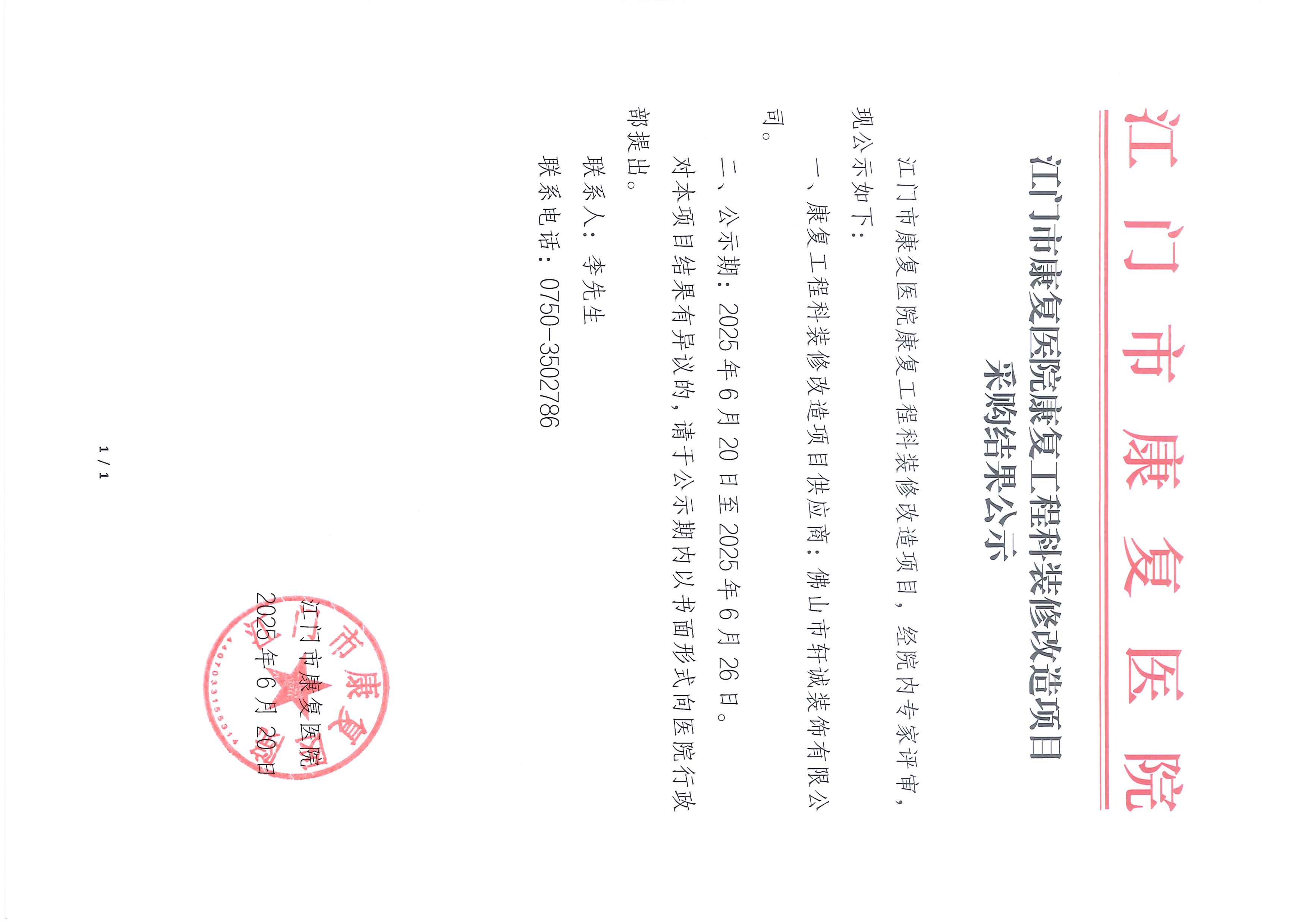 江門市康復(fù)醫(yī)院2025年宣傳統(tǒng)戰(zhàn)第三方運營項目采購公告(第二次)